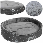 Oválný pelíšek pro psa Welsti tmavě šedý se stříbrnými kostmi a tlapkami XL 80x67 protiskluzový