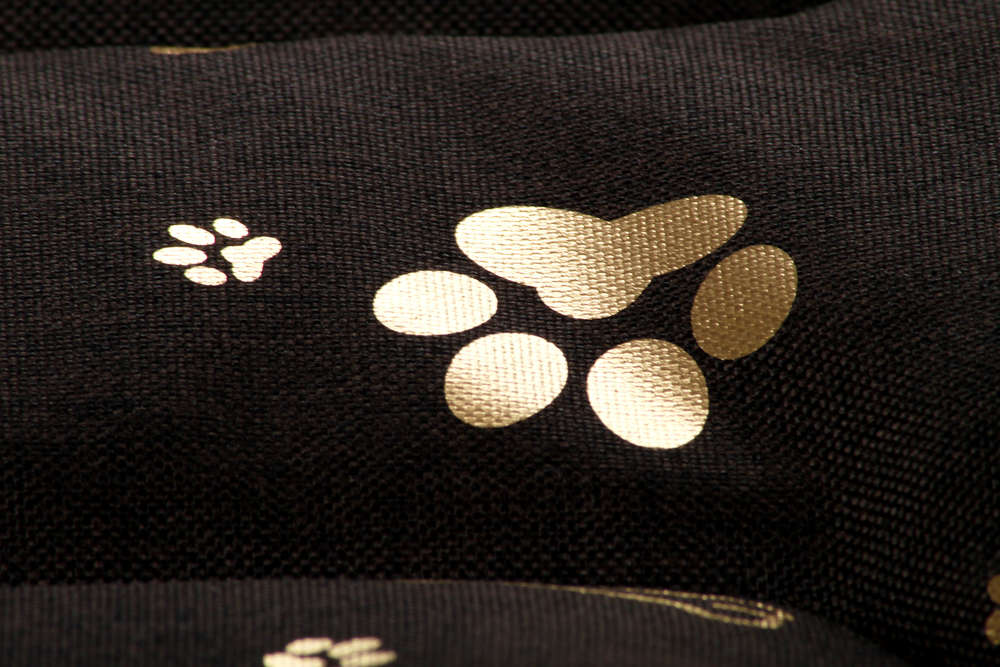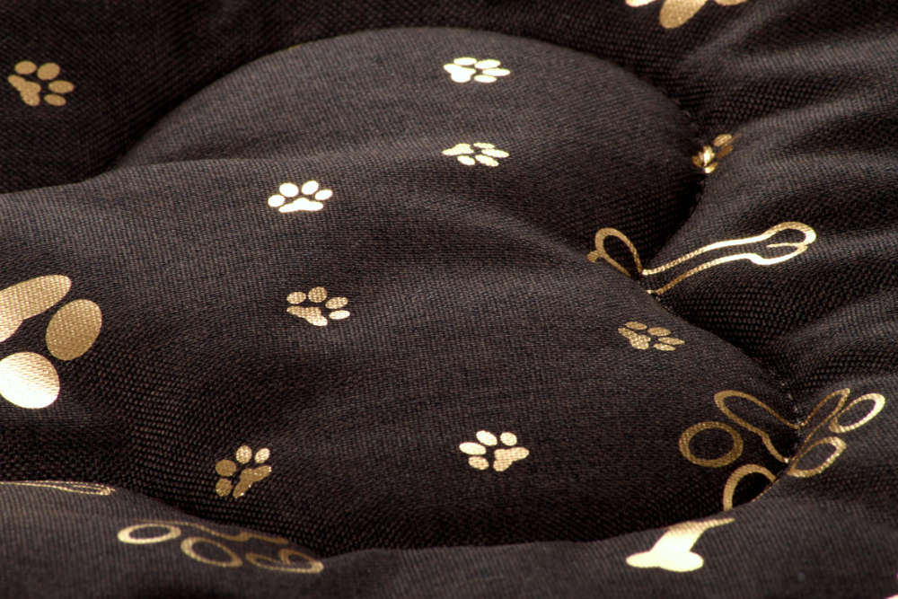 Pelíšek podložka pro psa Welsti hnědý se zlatými kostmi a tlapkami XL 130x90